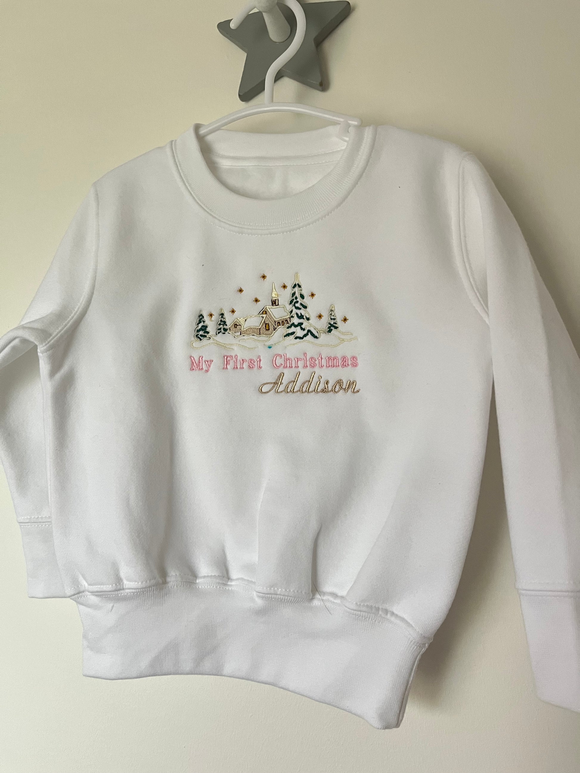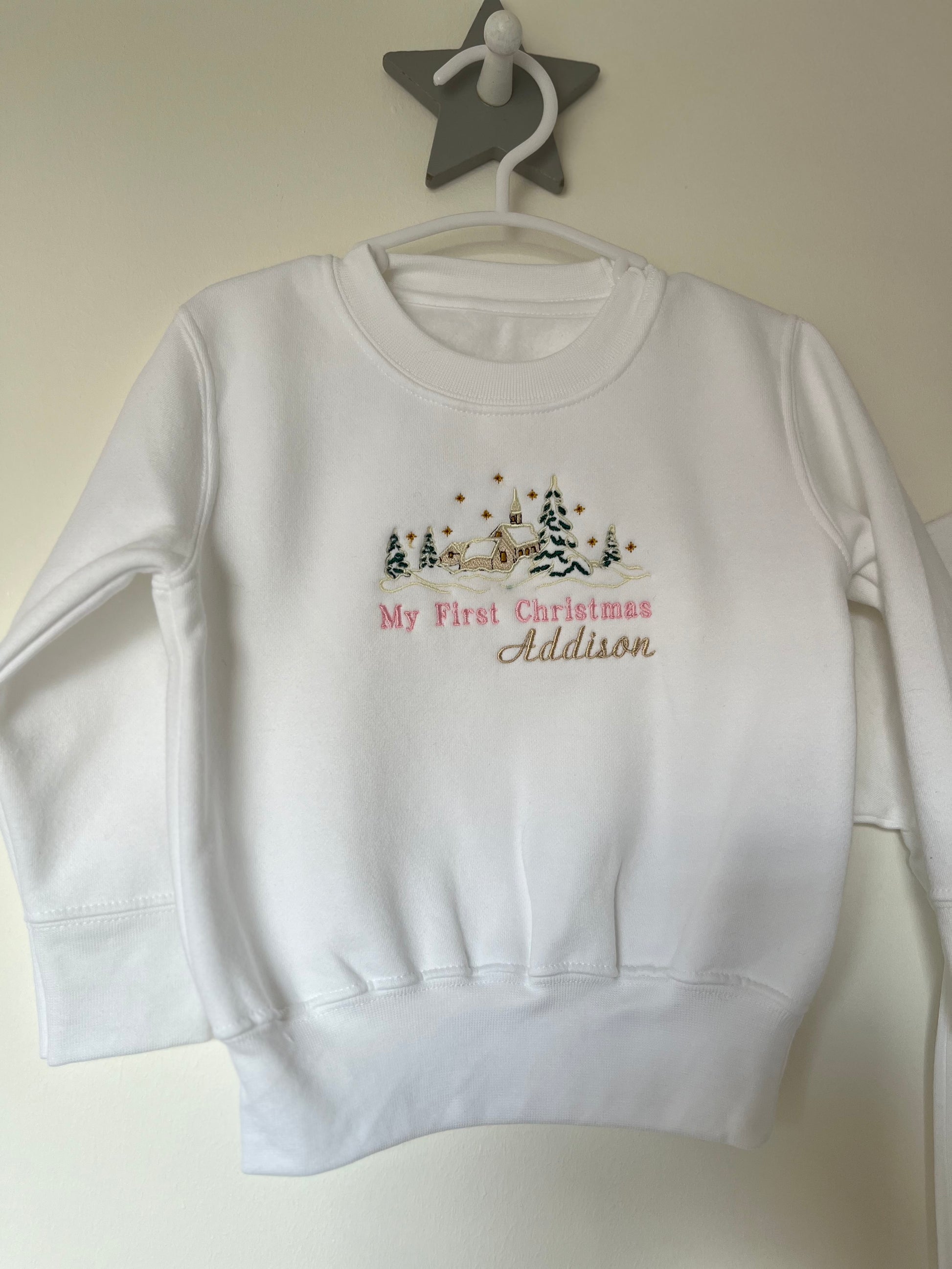 This children's sweatshirt, t-shirt or sleep-suit features an adorable embroidered Christmas design, making it the cutest addition to any child's wardrobe.