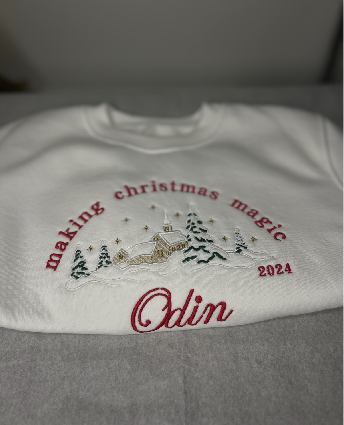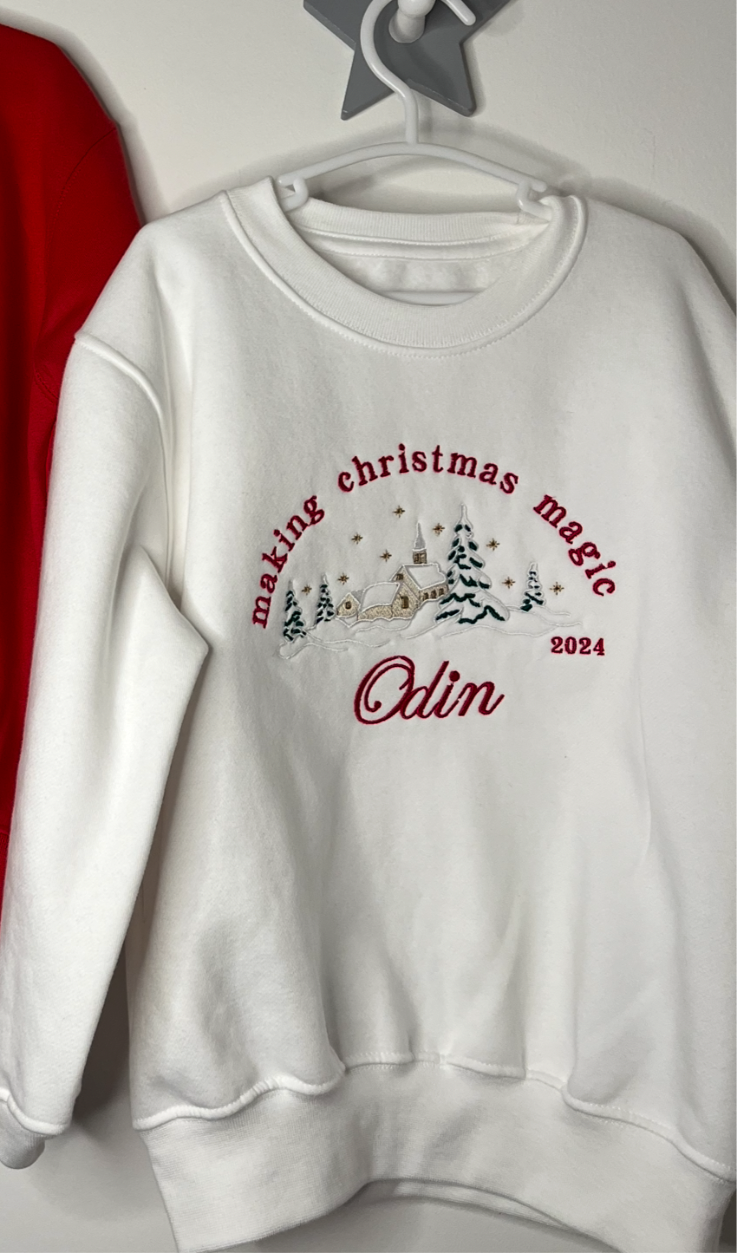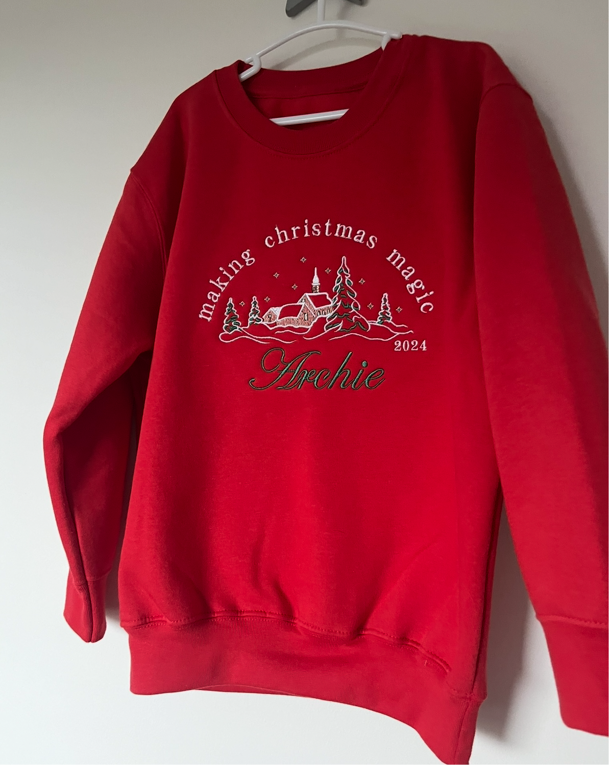 This children's sweatshirt, t-shirt or sleep-suit features an adorable embroidered Christmas design, making it the cutest addition to any child's wardrobe.