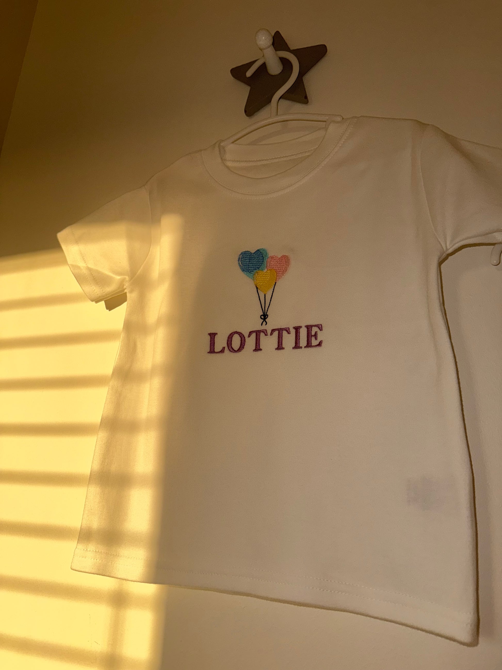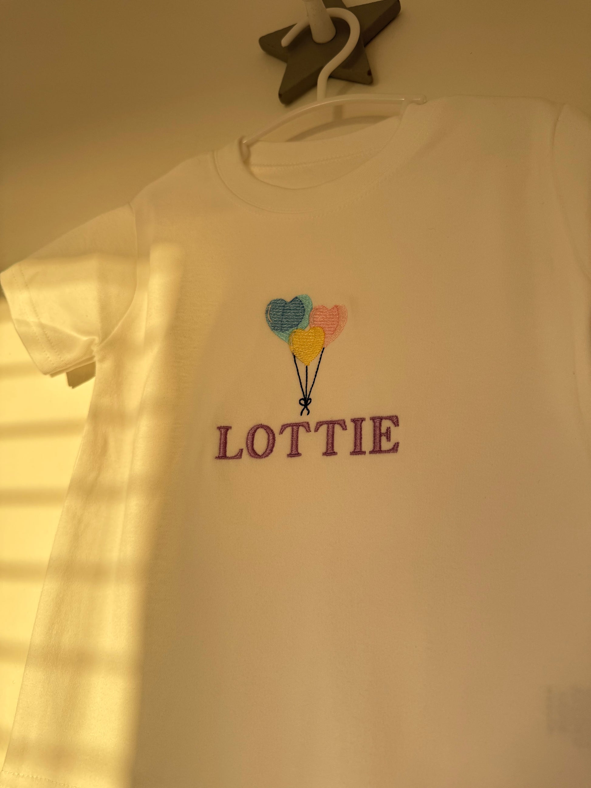 This children's sweatshirt, t-shirt, sleep-suit or long sleeve body suit features an adorable embroidered balloon heart bundle with your child’s name, making it the cutest addition to any child's wardrobe.